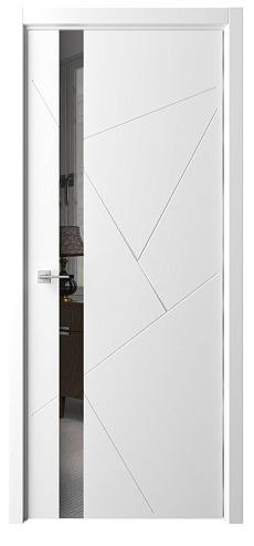 Дверь Геометрия-6 ширина 80 см Белый Эмаль Стекло белое кромка В цвет полотна в Екатеринбурге