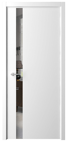 Дверь Геометрия-5 ширина 90 см Белый Эмаль Зеркало грей кромка В цвет полотна в Екатеринбурге