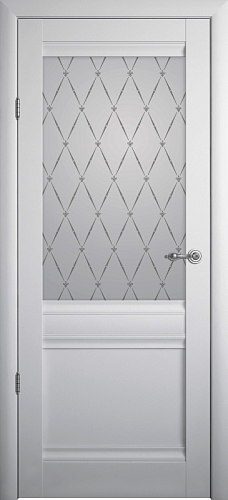 В остекленном варианте, в качестве остекления используется матовое стекло с художественным рисунком "Гранд". Идея рисунка соединить стильный ромб и благородный цветок «Лилия».