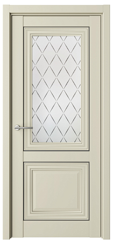Дверь Спарта-2 с молдингом ширина 80 см Ваниль Vinyl Стекло мателюкс "Лорд черный" Молдинг черный в Екатеринбурге